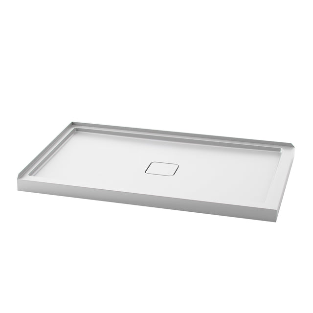 KOVER 60x36 Rectangular Acrylic Shower Base 60x36 with Central Drain and Left Integrated Tiling Flange on 2 sides