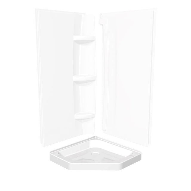 - 42x42 Acrylic Neo-Angle Base with Corner Drain in White, direct to stud installation