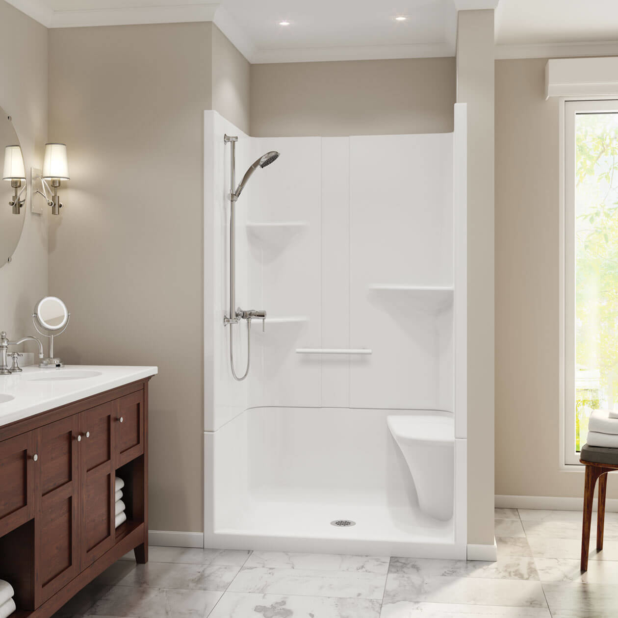 Camelia SH-4834 Acrylic Alcove Center Drain Two-Piece Shower in White