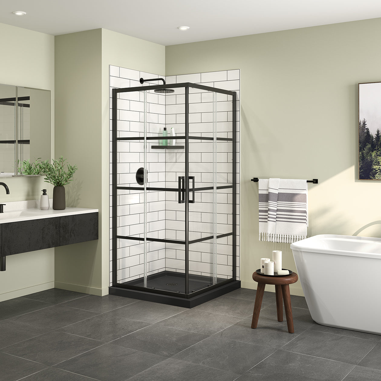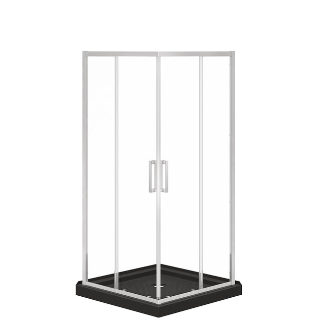 Scarlet 36 x 36 Acrylic Corner Drain Shower Kit in Black with Clear Glass in Chrome