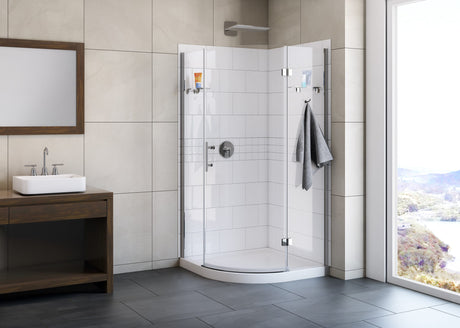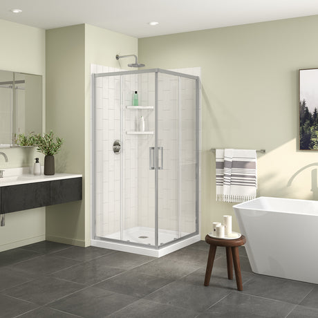 Scarlet 36 x 36 Acrylic Corner Drain Shower Kit in White with Clear Glass in Chrome