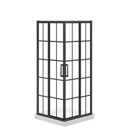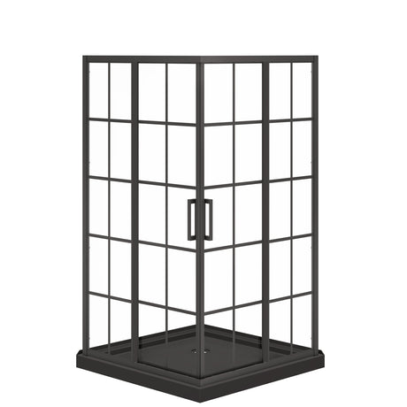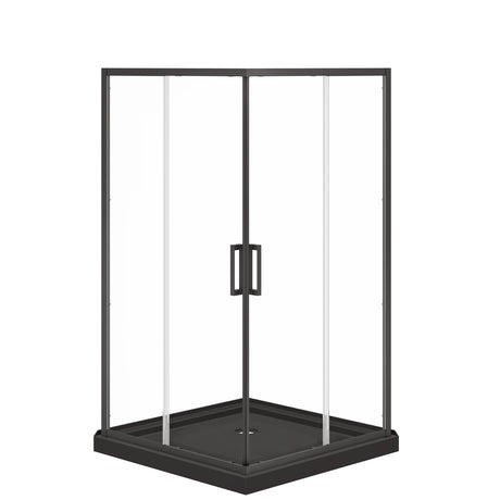 Scarlet 36 x 36 Acrylic Corner Drain Shower Kit in Black with Clear Glass in Chrome