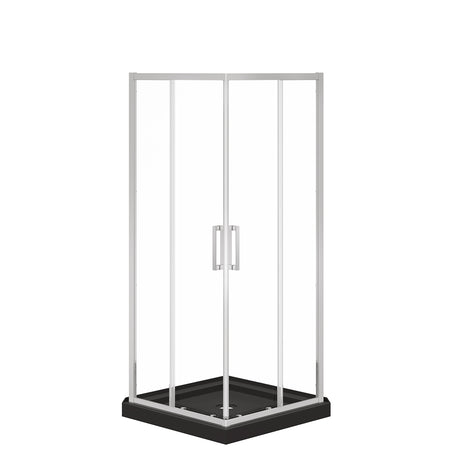 Scarlet 32 x 32 Acrylic Corner Drain Shower Kit in Black with Clear Glass in Chrome