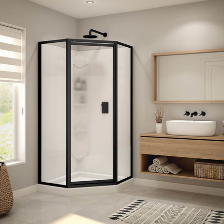 Scarlet 42 x 42 Acrylic Corner Drain Shower Kit in Black with Clear Glass in Chrome