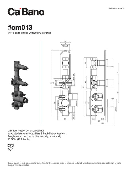 Thermostatic shower column