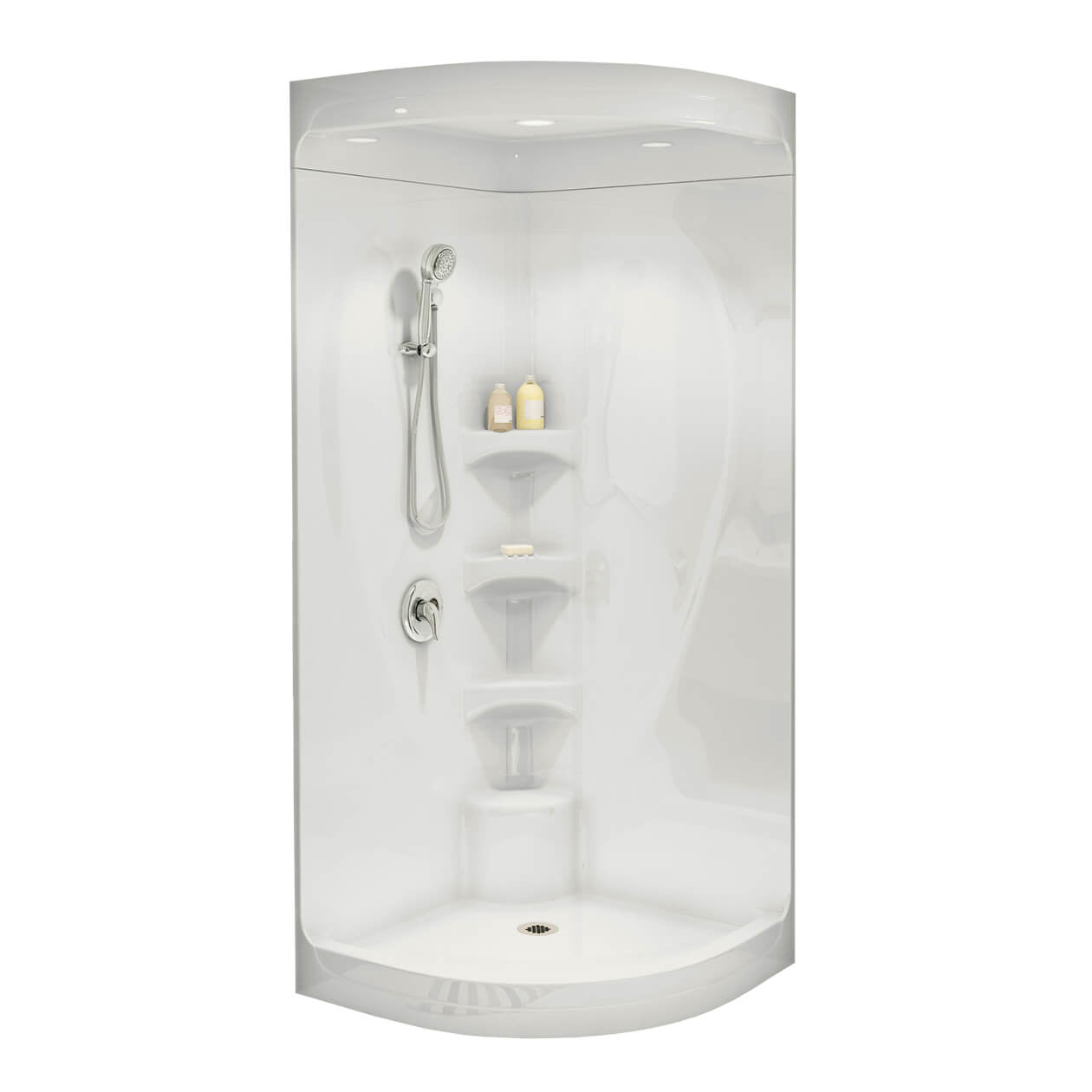 Equinox I 37 x 37 Acrylic Corner Center Drain One-Piece Shower in White