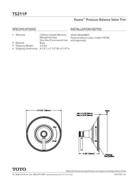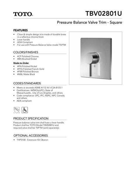 Odin Pressure Balance Valve Trim Only - Less Handle