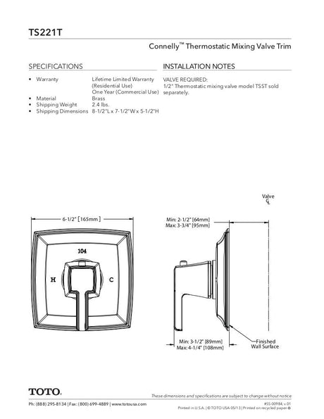 Allaria Sensori Thermostatic Valve Trim - Less Handle