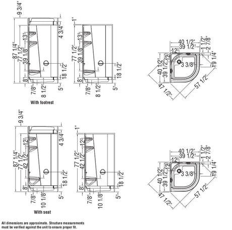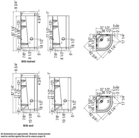 SECCSS36 38 x 38 AcrylX Corner Center Drain Two-Piece Shower in White