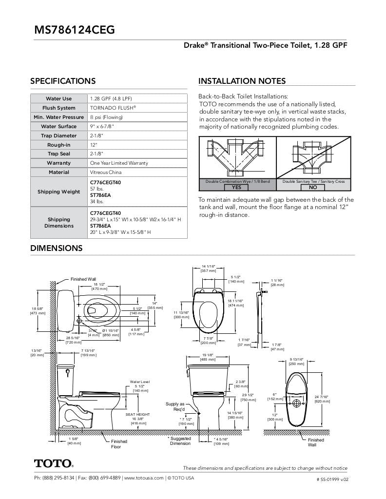 Drake Transitional Two-piece Toilet, 1.28 GPF, Elongated Bowl