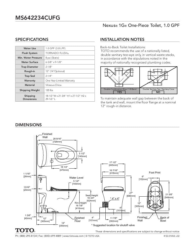 - 1.0 GPF GRAVITY : Toto Tip : This new line of toilets uses TOTO’s gravity-based TORNADO technology, offering a balanced and ultra-efficient 1.0 gallons per flush.
