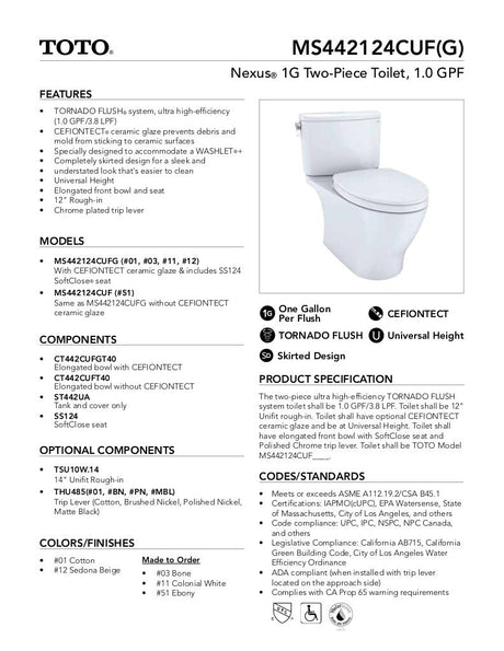 Nexus 1G Two-Piece Toilet, 1.0 GPF, Elongated Bowl