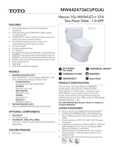 AquiaIV -WASHLET+ S7A One-Piece Toilet - 1.28 GPF & 0.9 GPF