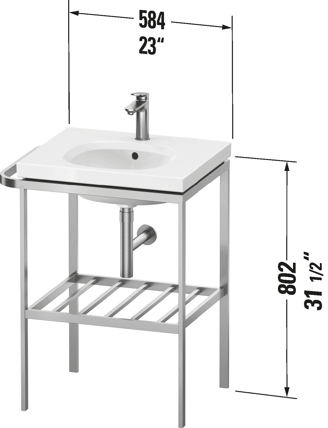 Number of storage surface: 1, Number of towel rails: 1, Pedestal color: Stainless Steel Brushed Aluminum, Adjustable height