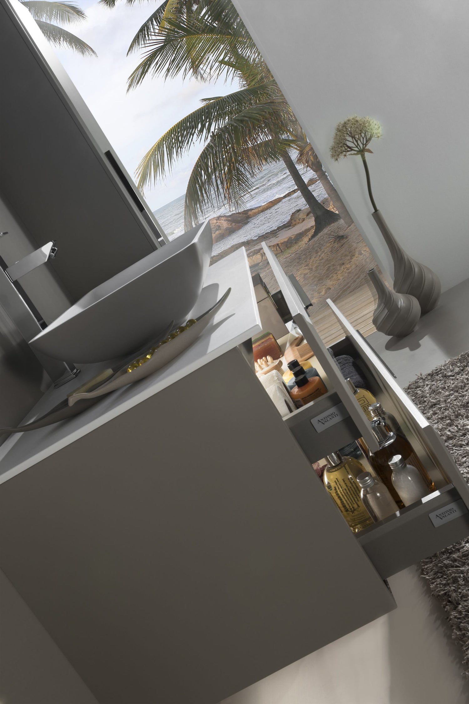 Countertop: Italian acrylic glossy white or matte acrylic