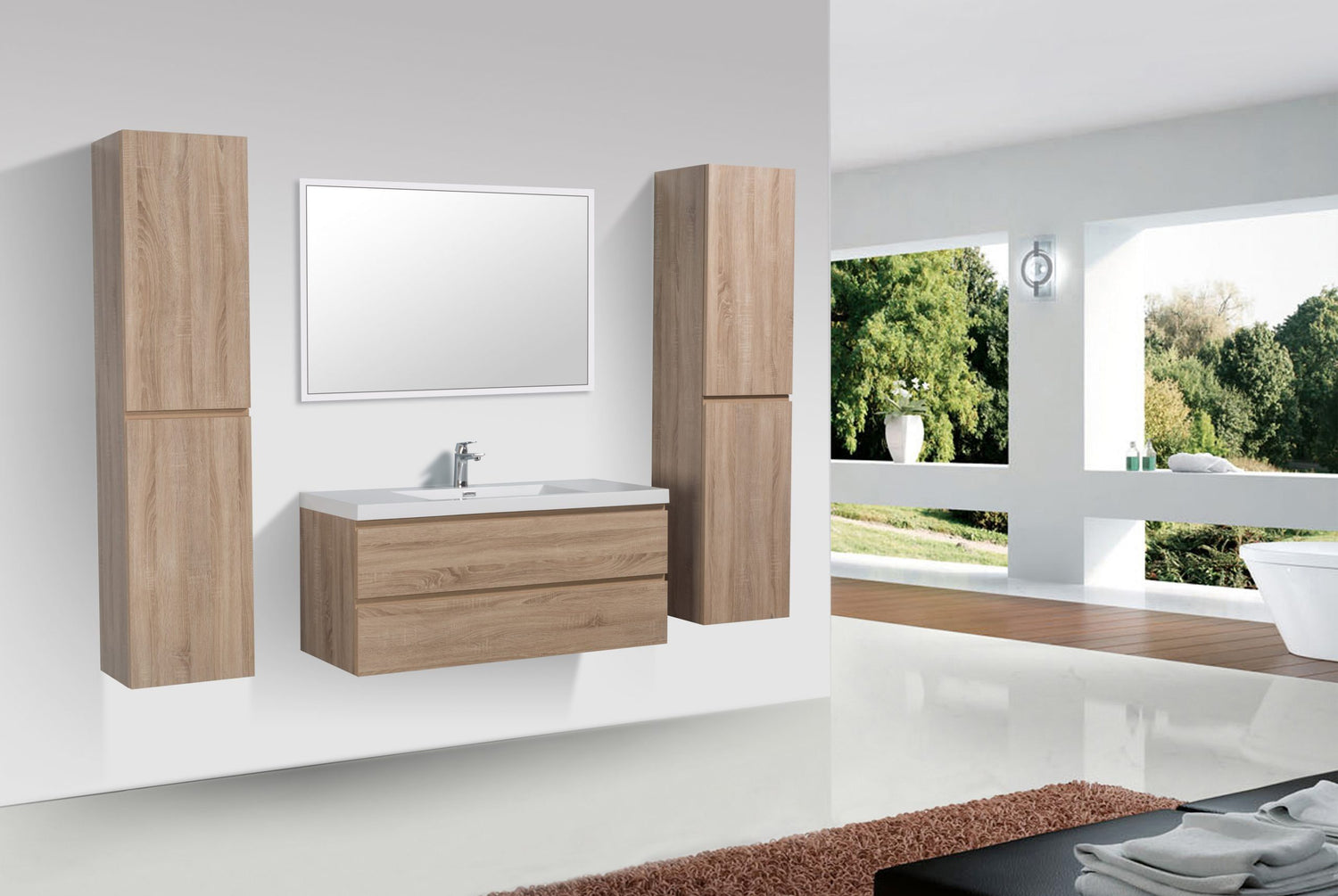 Venice is a modern vanity from the “Collezione Italiana” produced by Zimmer Vanities. This vanity is perfect for your bathroom. The Venice bathroom vanity is available in different colors, high gloss white and white oak, the product delivered is with the doors and drawers mounted.