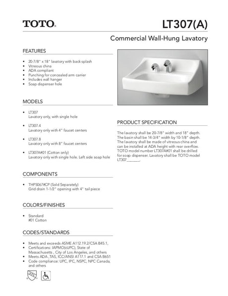 Commercial Wall-Hung Lavatory with Soap Dispenser Hole