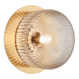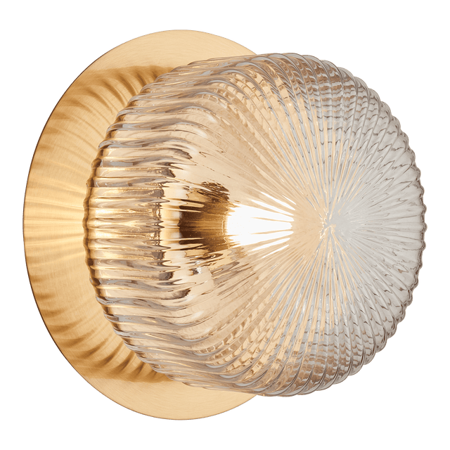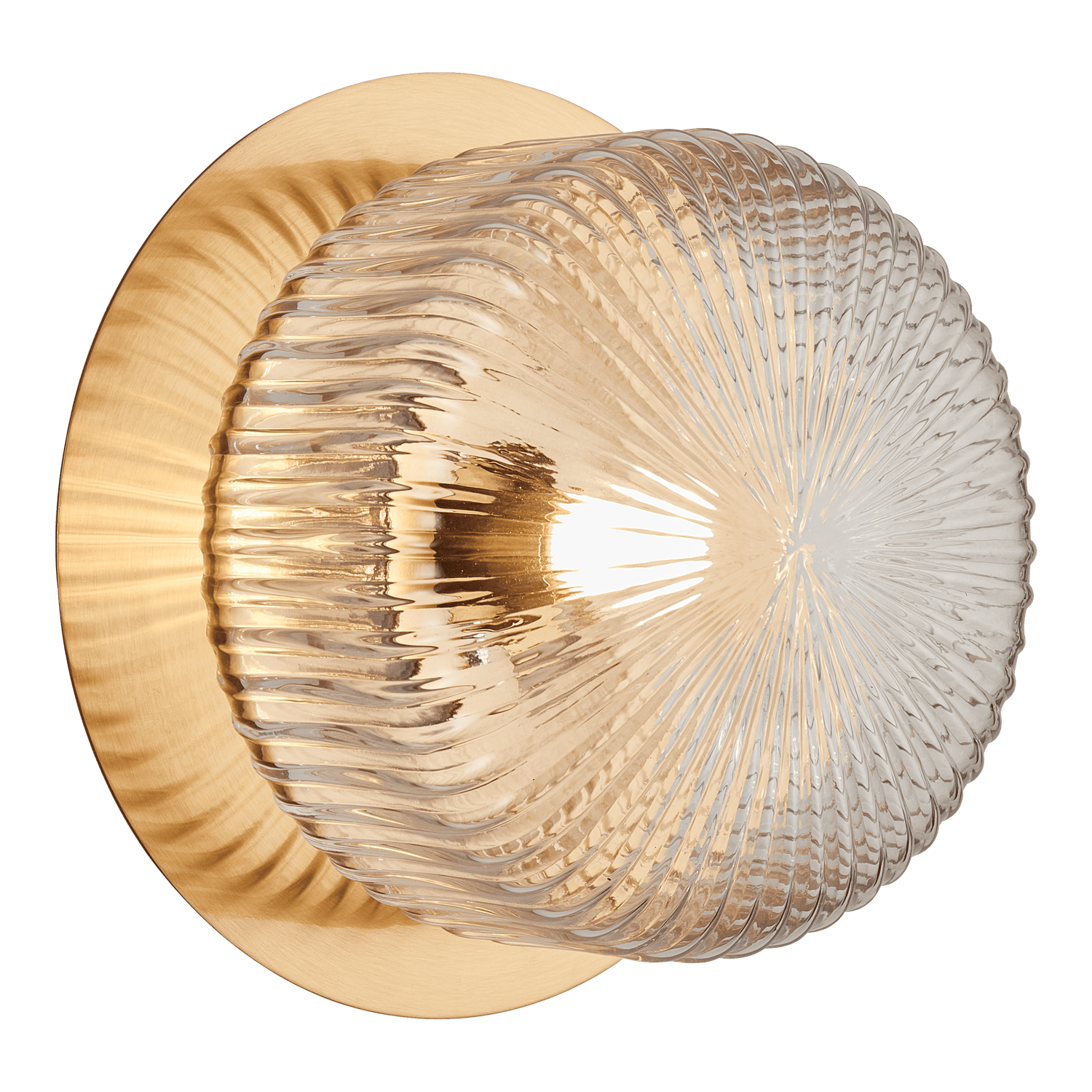 Knobbel Knob shaped glass is ribbed and meets in the centre to elevate the retro elegance. Available in Aged Gold Brass or Matte Black canopy with either Clear or Opal glass in one, two, or three light options. The reflection on the canopy provides extra pizzaz for the Knobbel collection. *LIGHTBULBS NOT INCLUDED