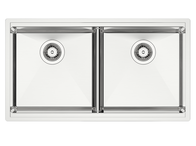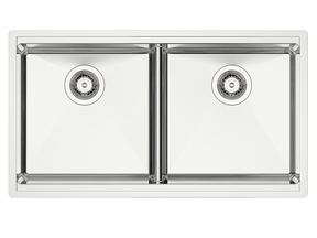 - 10mm Radius - 18 Gauge - Stainless Steel - Undermount - Double Bowl - 34 inch