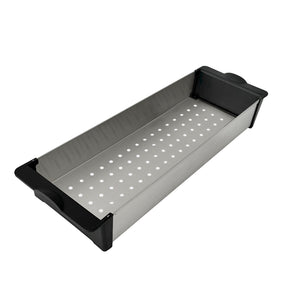 Discover the versatility and innovation of our workstation Colander, a must-have kitchen tool designed for optimal functionality. Crafted from T-304 stainless steel, this colander is exceptionally strong, durable, and heat resistant. With dimensions of 16-7/8" x 5.5" x 2-1/4", it's perfect for washing fruits, draining pasta, drying dishes, or storing small utensils. The evenly distributed small holes ensure rapid drainage, and it's dishwasher-safe for easy cleanup. Plus, its modern design seamlessly complements Versa™ and Completo™ workstation sinks while staying cool to the touch when straining hot foods. Elevate your kitchen experience with this versatile and stylish colander.