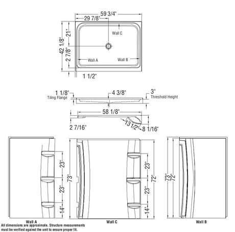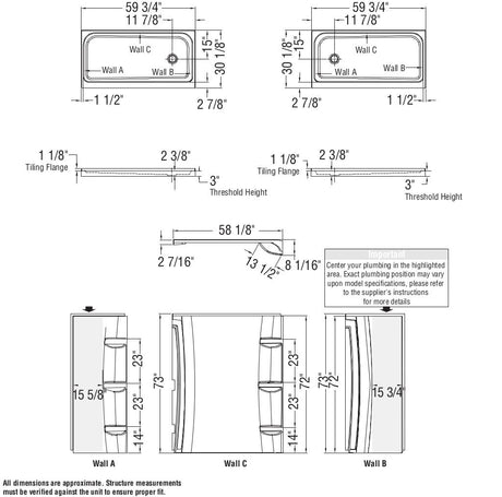 60 x 72 in. Acrylic Direct-to-Stud Back Wall in White
