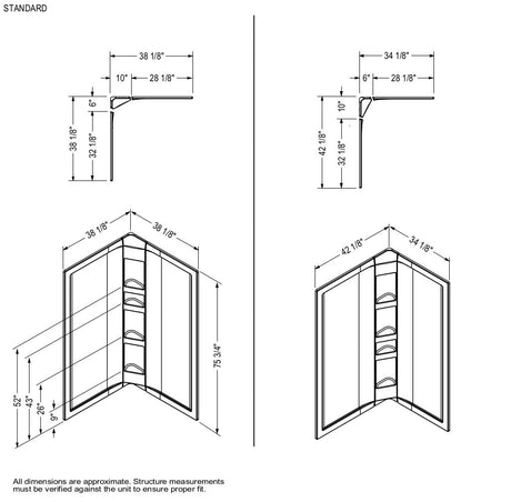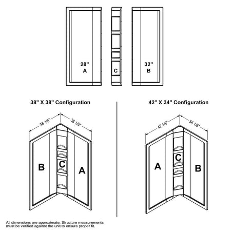 38 x 38 in. Acrylic Three-Piece Corner Shower Wall Kit in White