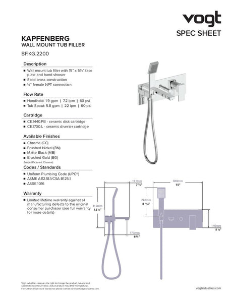 NIVEAU TRIM FOR WALL MOUNT TUB FILLER