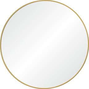 Glamor pours out into the mid-century modern interior space with this mirror. Thanks to a 30-inch circumference, it walks the line between small, versatile design and grand, instrumental piece. With an iron frame showcasing a powder-coated gold finish, its warm details shine without the need for further decoration.