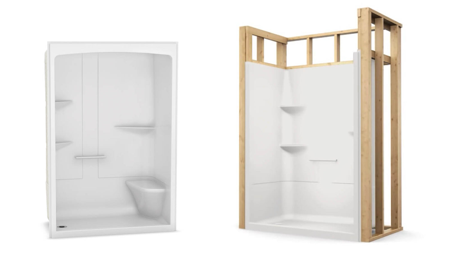 - 1-piece shower with 3 1/4 in. low threshold