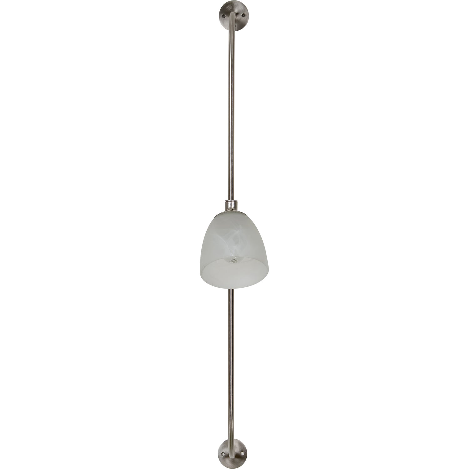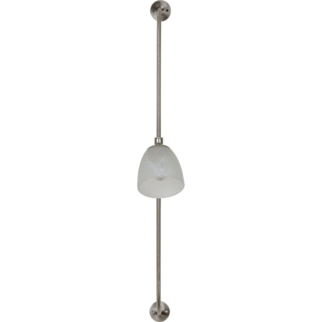 An alabaster glass shade is perfectly perched on this satin nickel-plated finished iron structure. An in-line switch makes for easy illumination. The adjustable light is a beautiful addition by your nightstand.