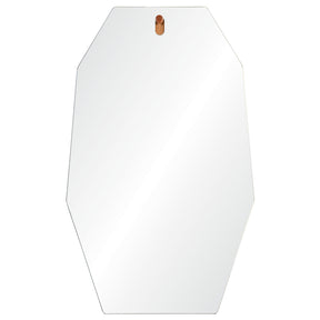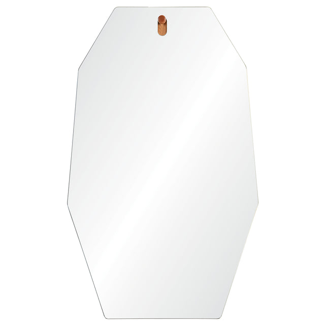 Accessorize modern walls with the minimalist appeal of this decorative wall mirror. A slightly beveled edge enhances the geometric mirror’s elongated octagonal shape while a notch at the top of the looking glass suspends the mirror from the wall by a simple peg. The style is austere, yet elegant – perfect for rooms with an appreciation for simple design forms.
