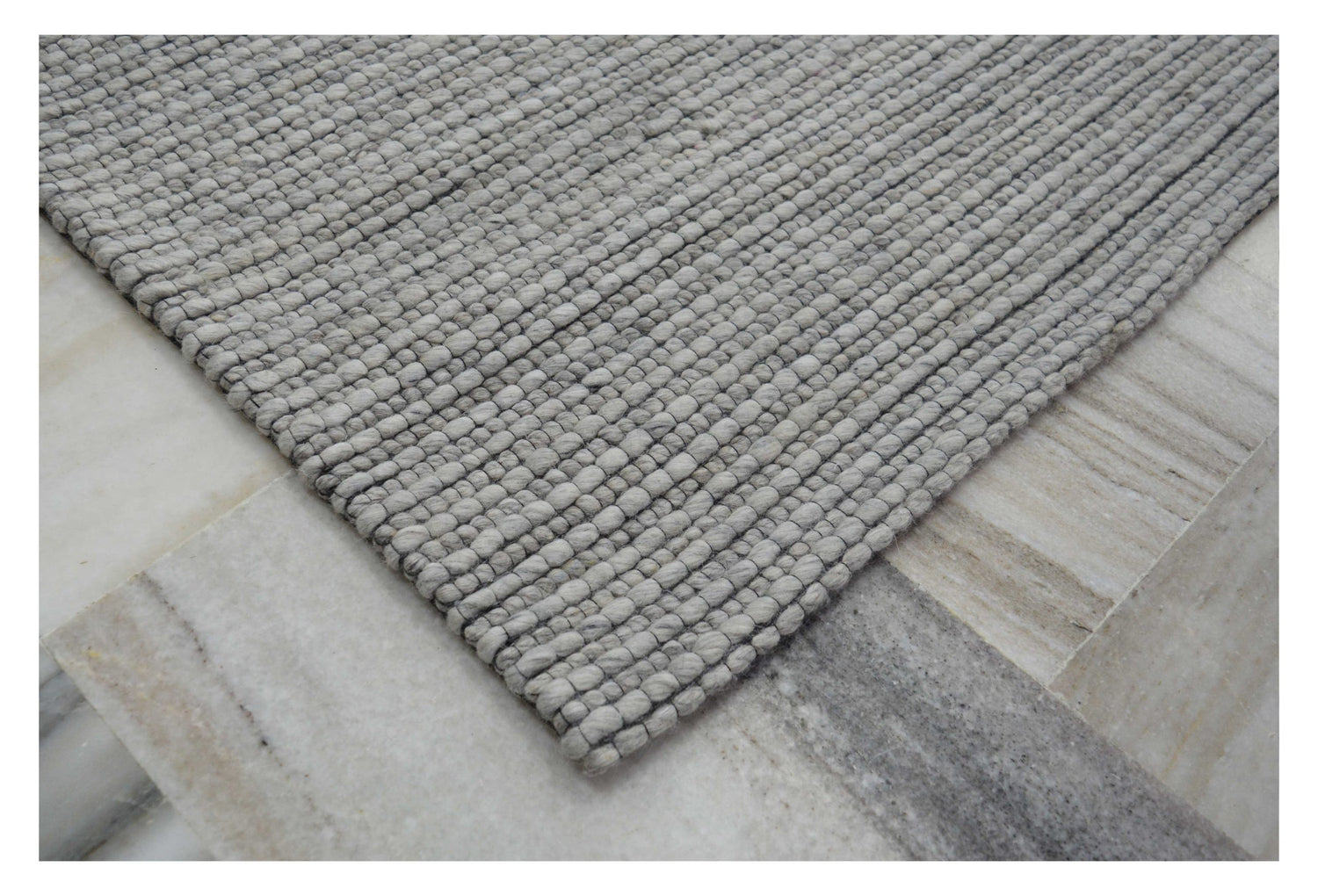 With a solid pattern that’s right in every room, this eclectic area rug offers versatile style that suits classic and contemporary floors. The timeless beauty of this decorative floorcovering is evident in the combination of natural wool and soft viscose fibers, hand-woven with craftsmanship inherited from generations of artisanal rug weavers. The rug’s silver color palette layers effortlessly beneath couches, coffee tables and beds.