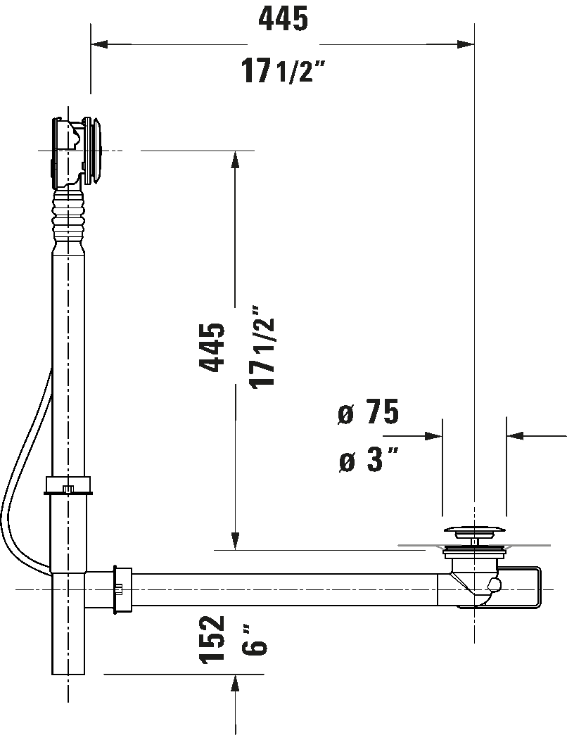 Bowden cable length: 35 3/8 ", Diameter waste plug: 2 "
