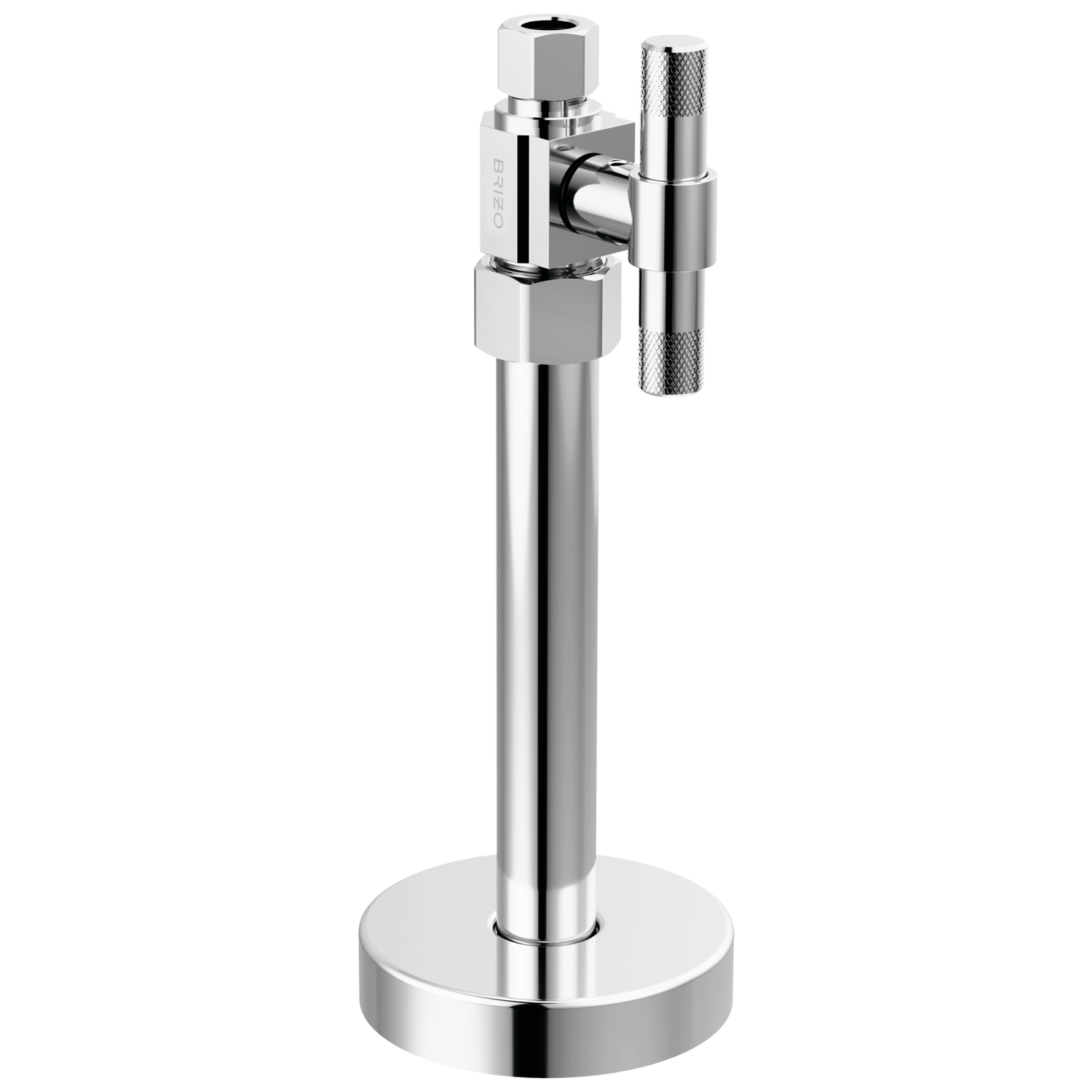 Elevated sink fittings create more possibilities for open vanity designs—replacing unsightly supply lines with products worthy of showcasing. These supply stops echo the meticulous knurling of the Litze Bath Collection, creating harmony throughout the space.