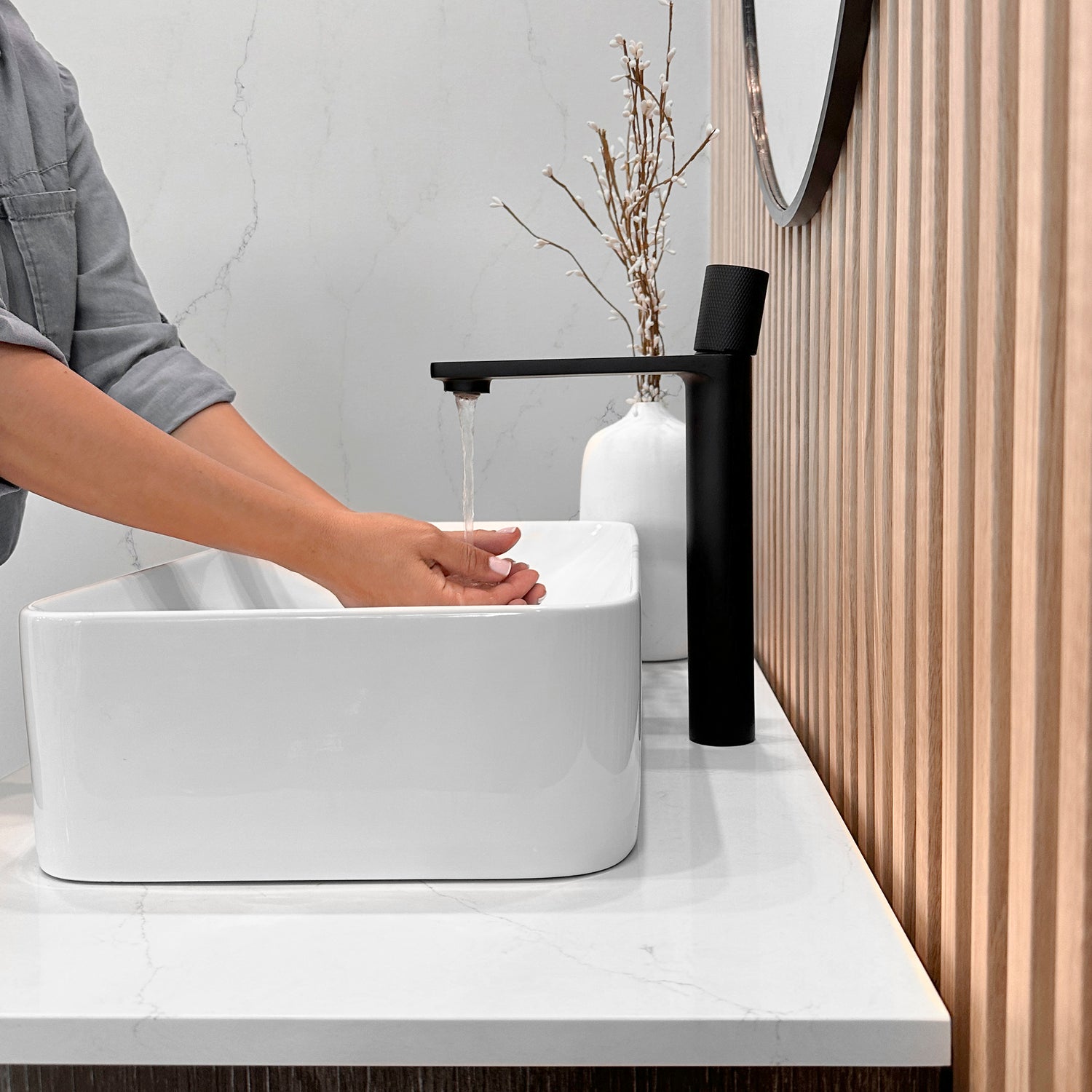 Enhance your bathroom with the sleek and elegant B-122 single-handle vessel sink faucet. Its modern cylindrical design adds a touch of contemporary flair, making it a perfect fit for any bathroom. Crafted from solid brass, this faucet ensures durability and long-lasting performance. It features a ceramic disc cartridge for drip-free operation and a premium aerator that conserves water without sacrificing pressure. Available in four finishes, this faucet is designed for single-hole installation with integrated hot and cold supply lines, compatible with standard US and Canadian plumbing. The smooth surface plating resists scratches and is easy to clean, maintaining its polished look over time. With a single lever handle for effortless control of water flow and temperature, this faucet combines functionality with style. Installation is straightforward, with all necessary hardware and waterlines included.