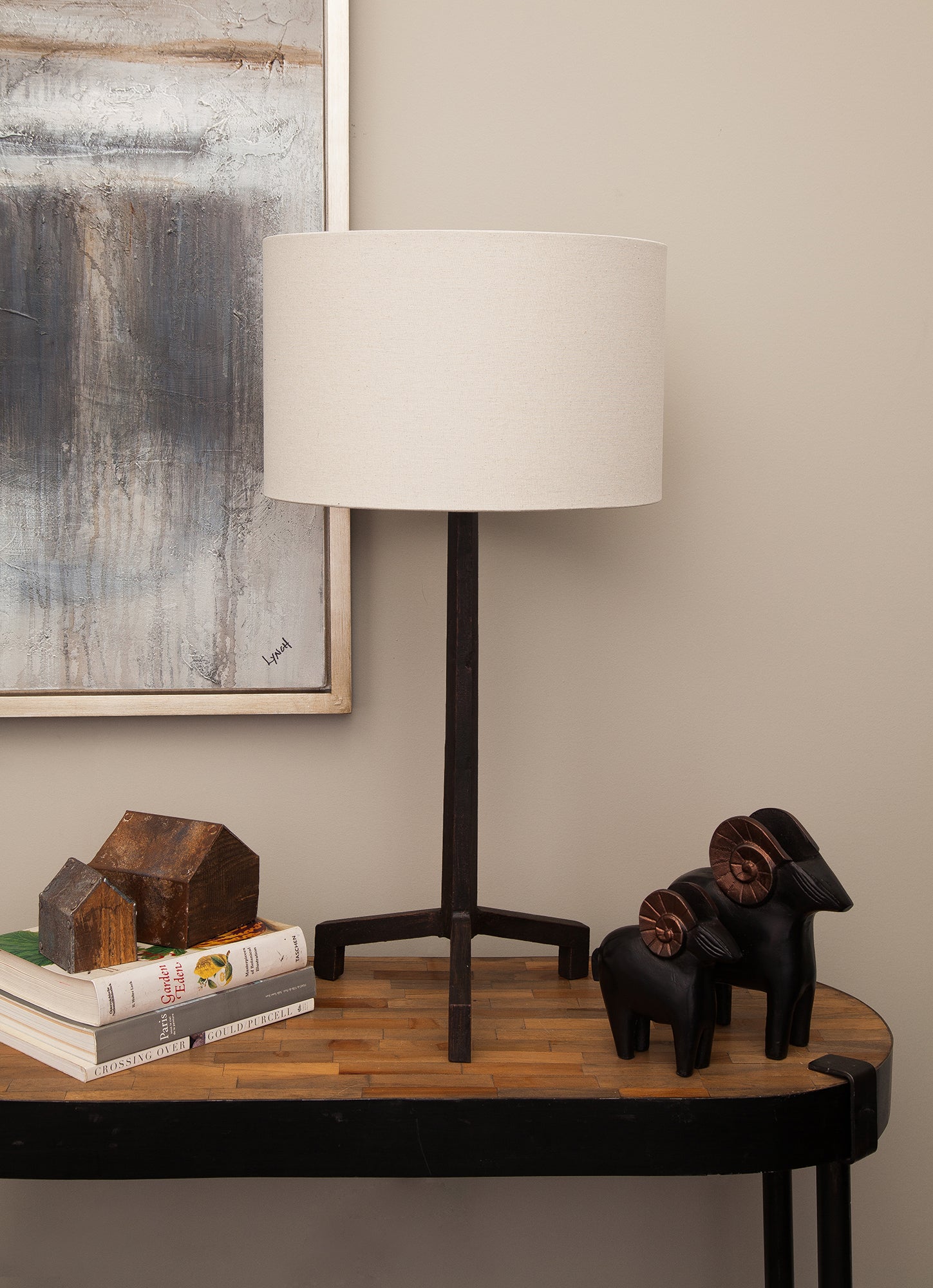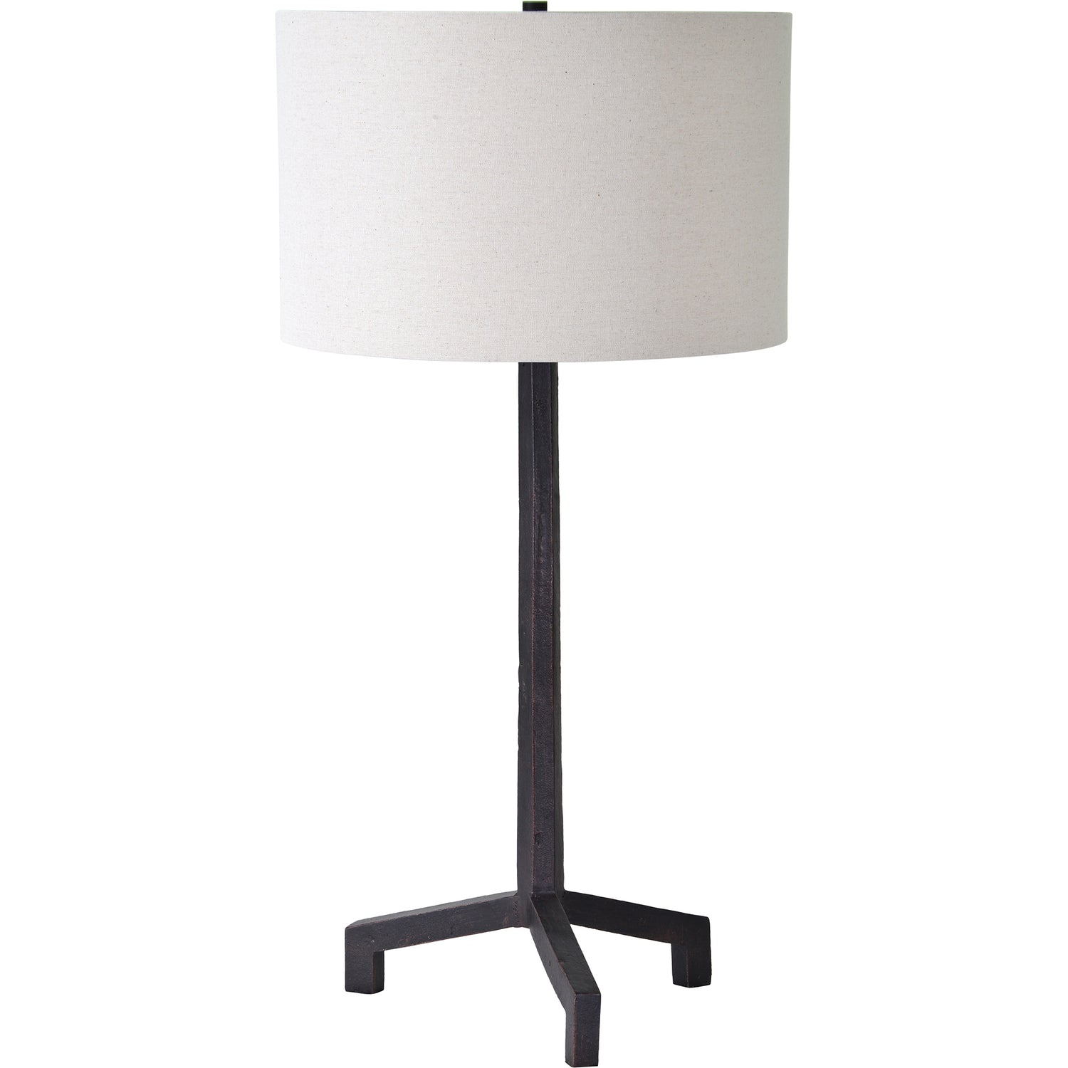 Organic influences come together in this serene table lamp. With natural tones of rustic finished iron and off-white linen, there is an inherent tranquility that brings warmth to the bedroom or any other peaceful room in the house.