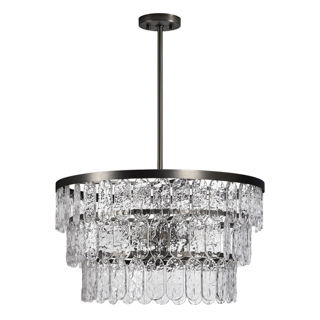 The client seeking a ‘wow’ moment in their home will find their wishes are fulfilled with this chandelier light. Showcasing glitz and glamour from every angle, this ceiling light fixture quickly becomes a focal piece in a foyer or dining room setting. The glass ornaments combined to an iron frame give this chandelier light fixture a modern touch, which makes it equally suited for more traditional and contemporary interiors.