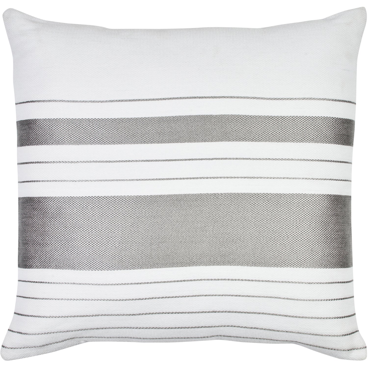 This outdoor pillow brings a glamorous appeal to the backyard. Cool grey with white stripes, it seamlessly integrates with contemporary pieces. A polypropylene exterior only adds to its smooth look, with the added benefit of durability.
