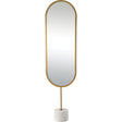 A marriage of luxury and minimalist design, this floor length mirror is inherently radiant. Set in the contemporary bedroom, this piece brings an upscale quality to the space. Featuring a marble base and an antique brass finished frame, it holds an ideal mix of old and new inspirations.