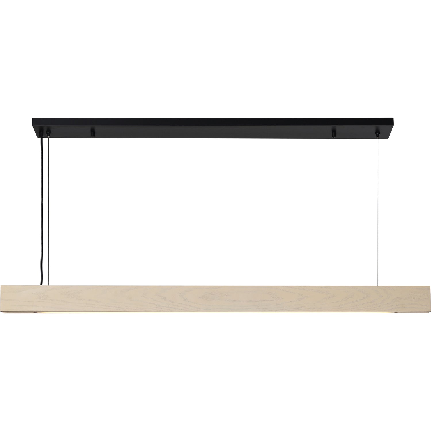 A towering piece of elegance in the contemporary home, this LED ceiling fixture is an optimal fit for a kitchen counter space or hallway. Composed of whitewash painted oak wood with a matte black painted iron canopy, it holds a palette that feels both timeless and modern. The LED bulbs offer quality in their glow and lifespan.
