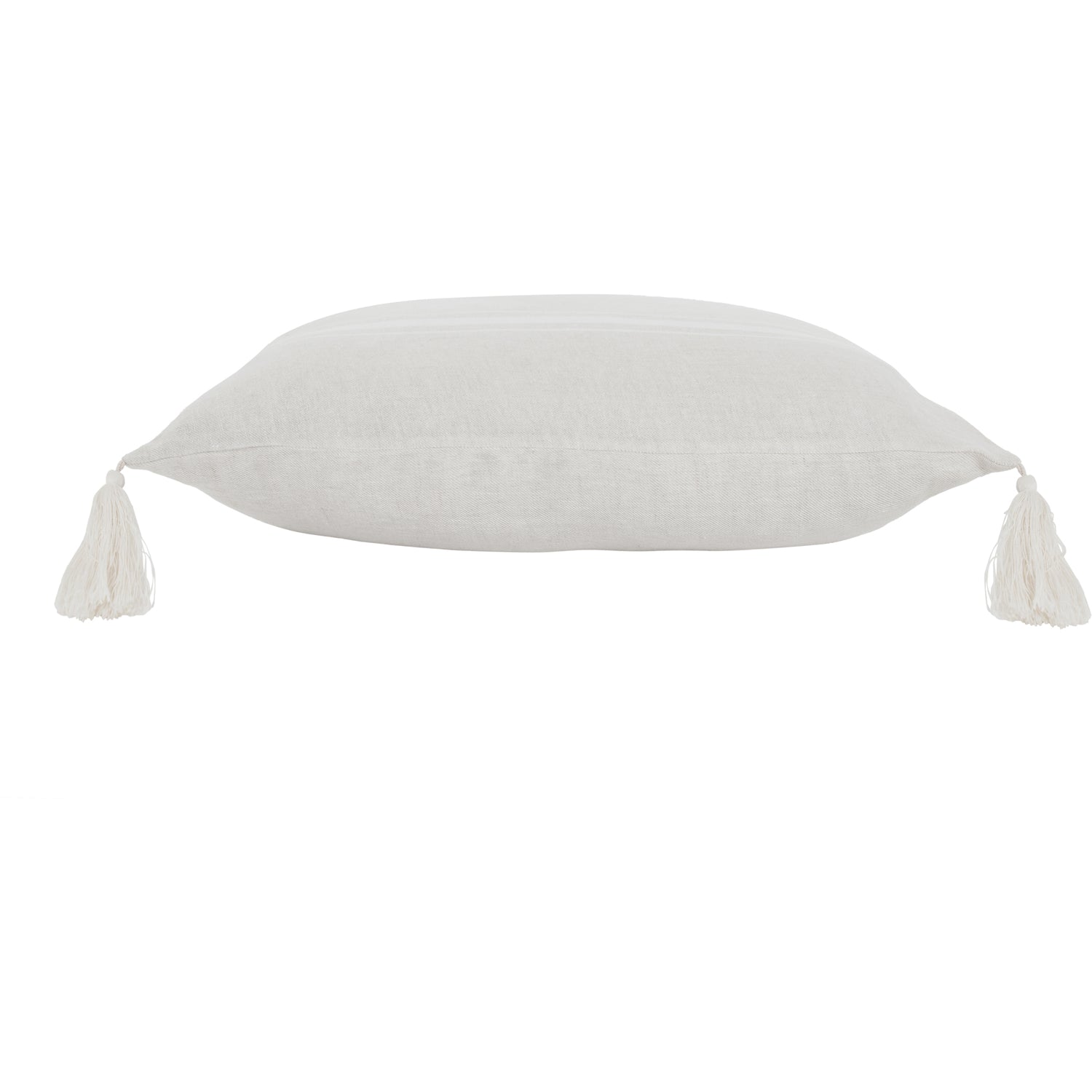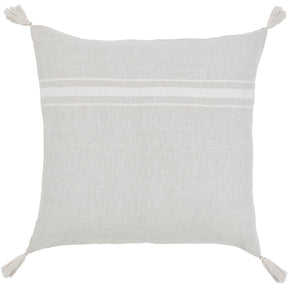 At once playful and polished, this throw-pillow design brings charm to the classic living space. Composed of linen in natural and cream tones, with a feather down filling, it holds softness in all forms. With a 22-inch square build, its size allows for easy arrangement with additional pillows.