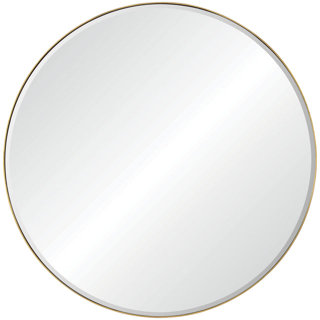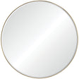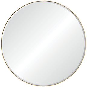The mid-century entryway is lifted to new heights with this circular wall mirror. Featuring a gold finished iron frame, it is able to feel at once current and old world. Complemented by artistic accessories the spherical structure will pop.