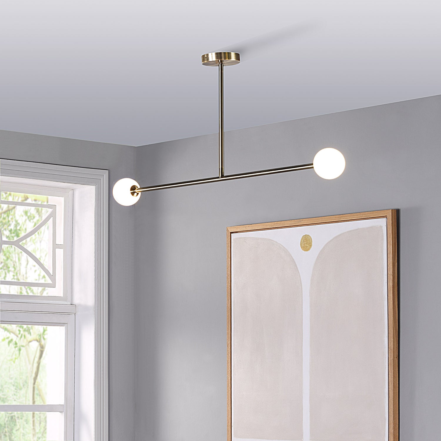 Stylish and timeless, this ceiling light fixture’s antique brass finish lends warmth to its streamlined structure. Optimally suited for a hallway, kitchen, living room or entryway setting, this light elevates the interior in a subtle yet significant fashion. The industrial-style bulbs and warm palette of this ceiling light fixture allow it to fit within mid-century modern, contemporary and industrial spaces alike.