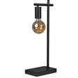 The home office gets elevated to new heights with this industrial table lamp. The textured black steel construction and warm-toned incandescent lamp feel understated and sleek. Set on the desk, it brings style to a piece of utility.