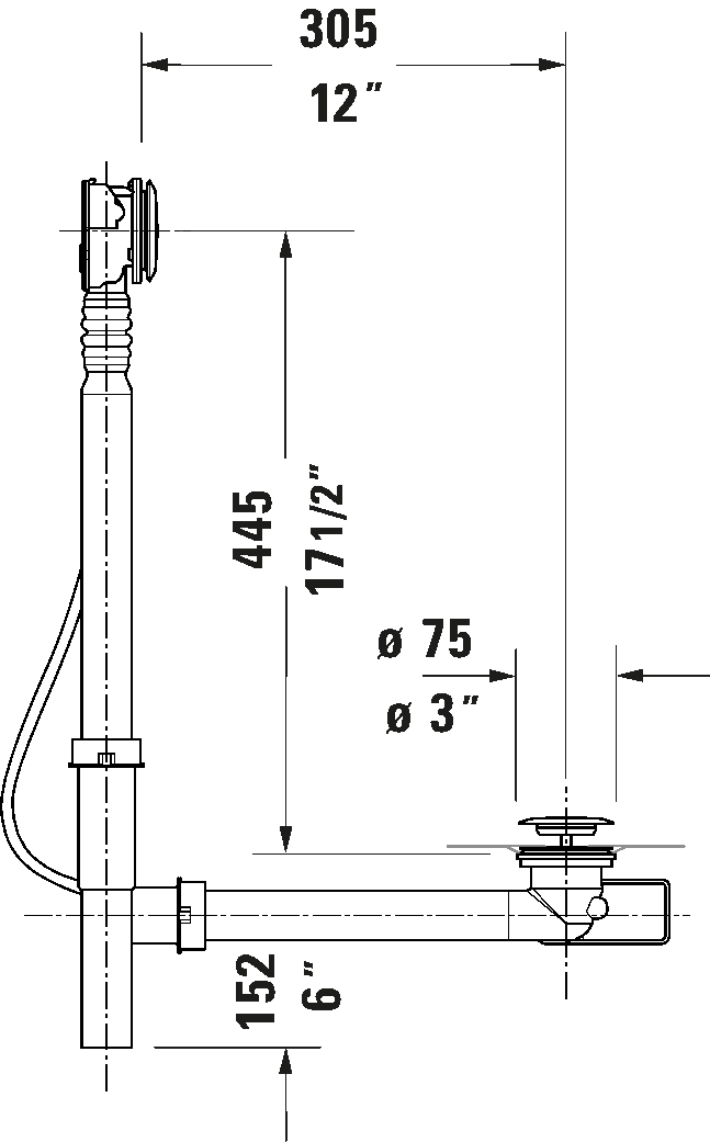 Bowden cable length: 27 ", Diameter waste plug: 2 "