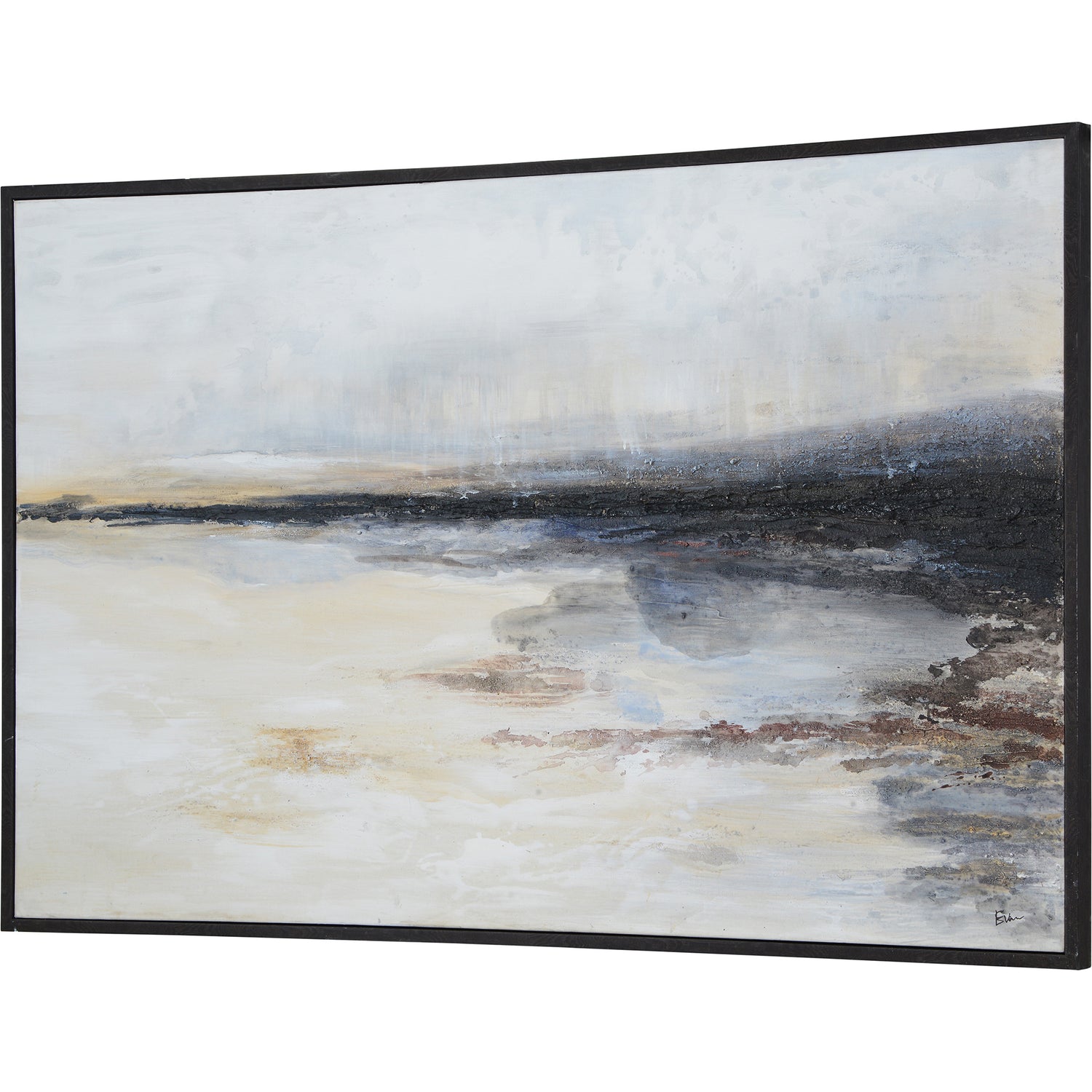 Captivating in all its simplicity, this piece has a soothing quality fit for the contemporary bedroom. With black textures set against a soft pastel backdrop, the painting takes on new life when hanging horizontally or vertically.