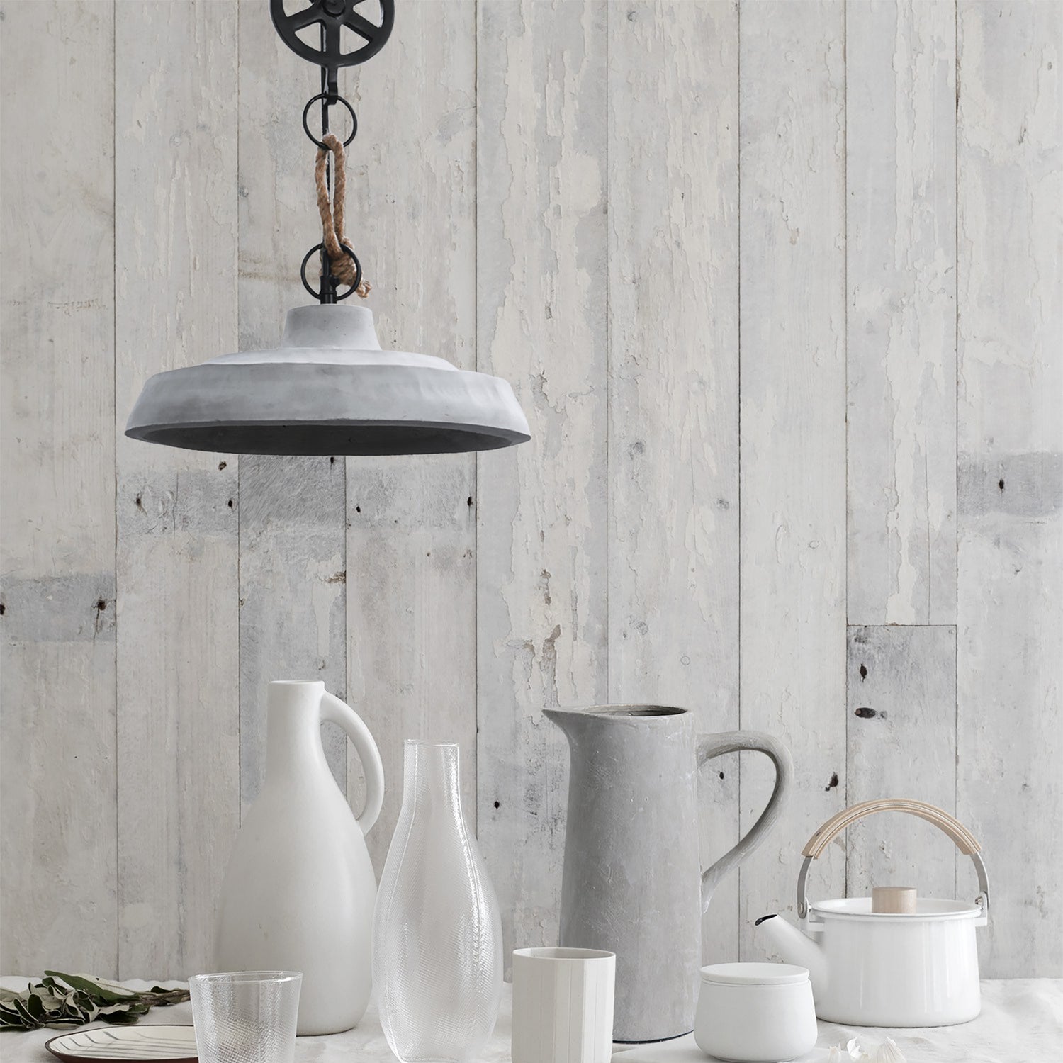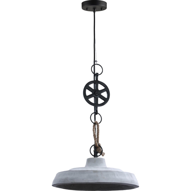 From the dockside to the dining room, this modern ceiling pendant light emphasizes the elements of industrial design. The light grey concrete lampshade is suspended by a fixed rope and pulley system. The vintage appeal of the light fixture is perfect for those with an appreciation for reclaimed architectural elements.