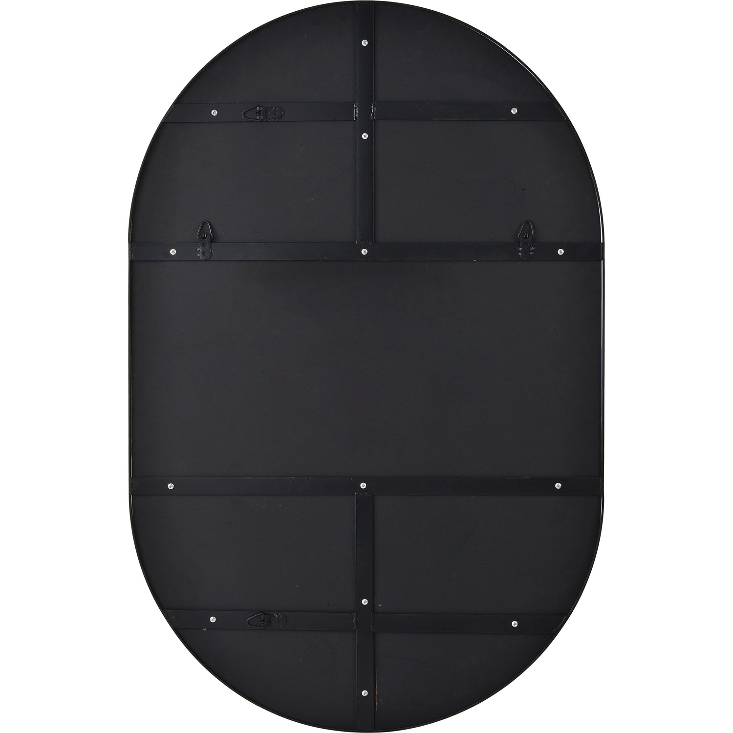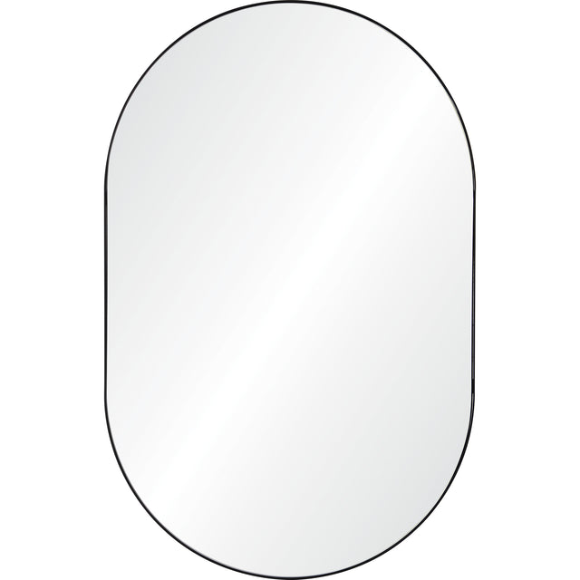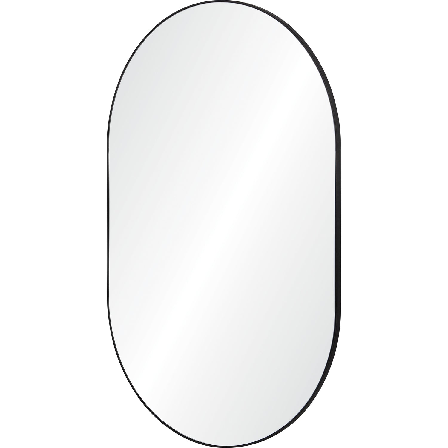 Simple, sleek and high style. This oval-shaped mirror has a minimal black powder coated iron frame. The look is modern, letting the reflection take center-stage.