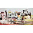 The energy and ebullience of a city skyline is captured in this clear gel coated printed art piece. With splashes of red, black, teal, and yellow collide and coalescing, it offers a new vision to the eye at every passing. Set in the minimalist interior, its large horizontal structure sets a lively tone for the space.