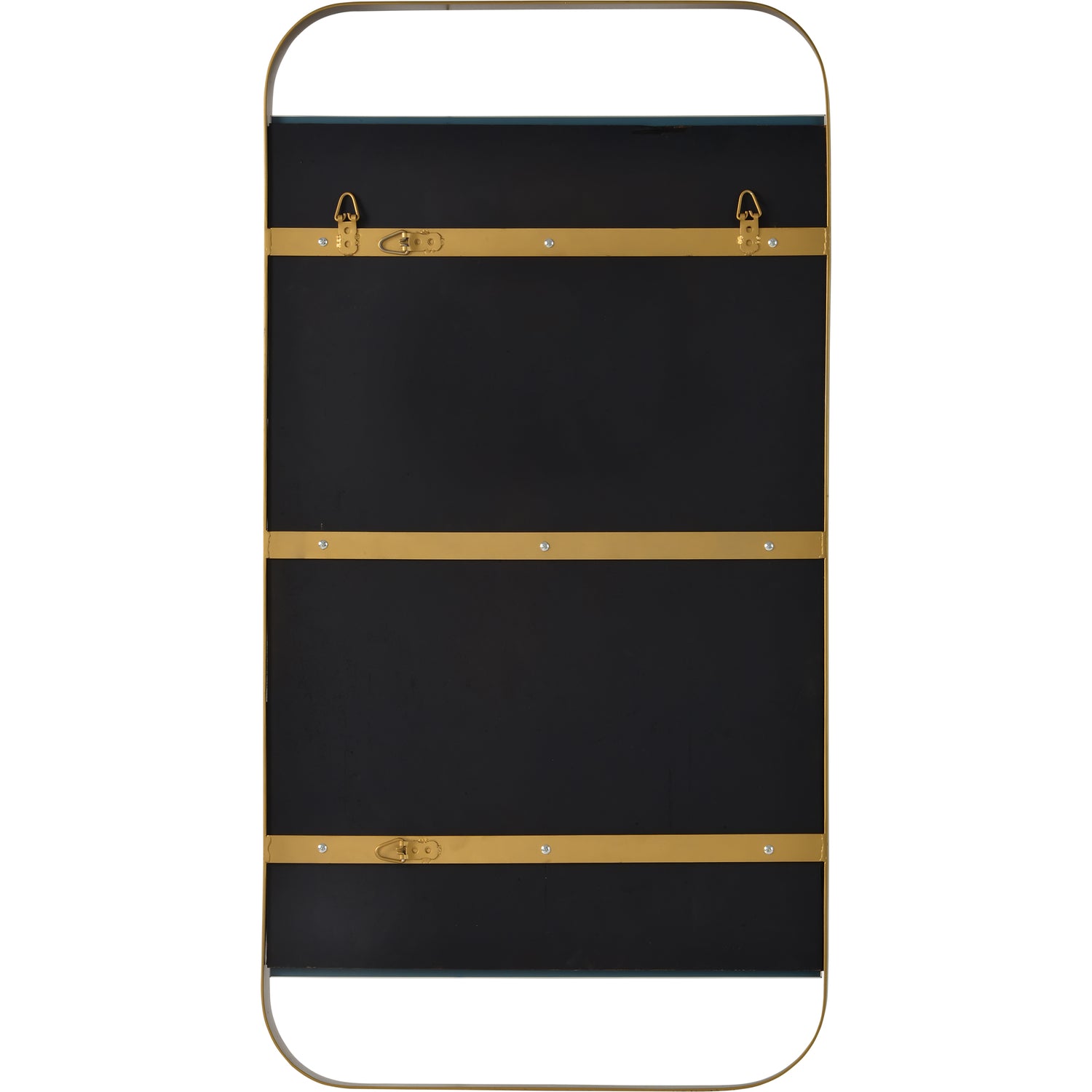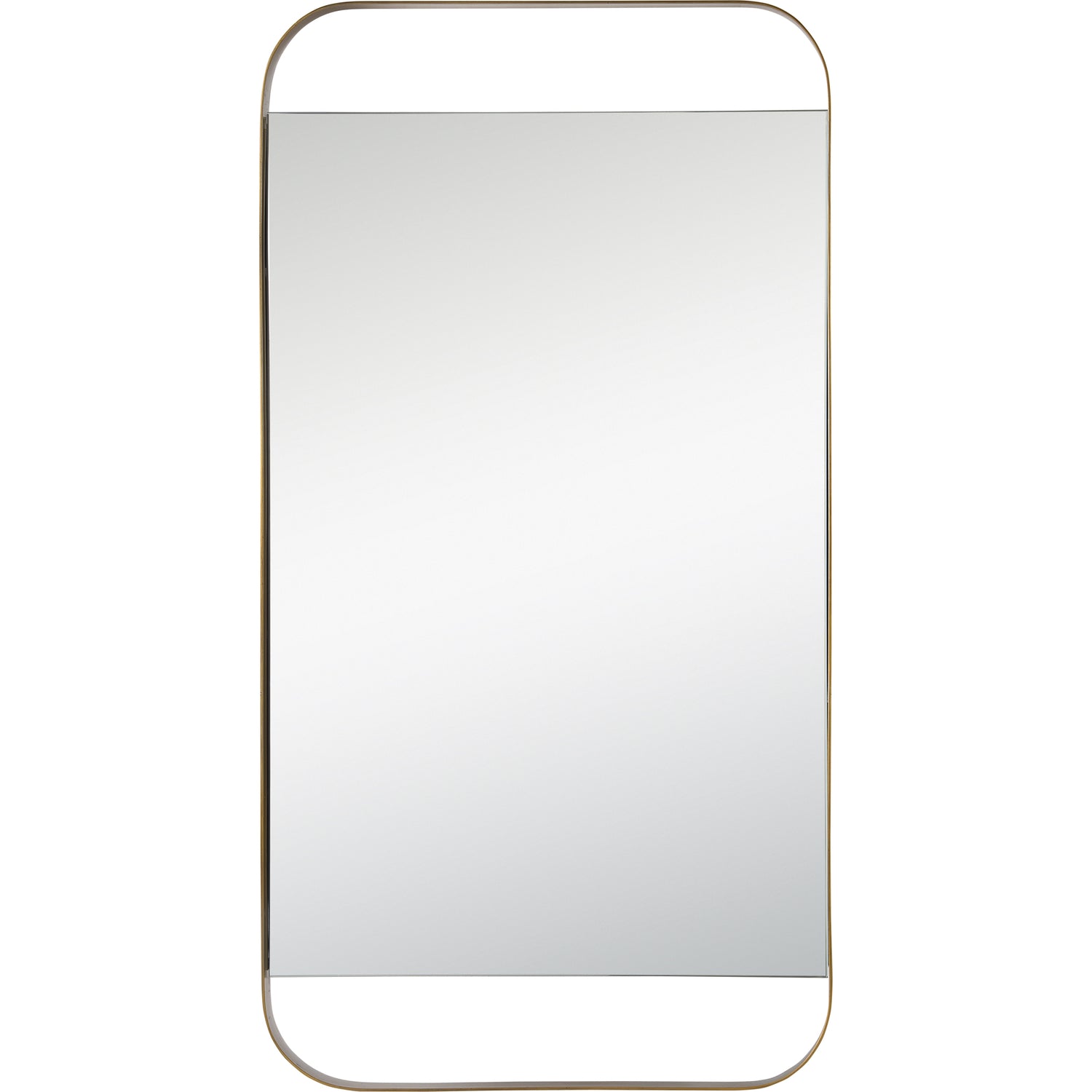 Modern minimalism fills the entryway with this wall mirror. The contemporary appeal of the painted antique brass finished iron frame is beautifully balanced by the streamlined structure. Pair with ornate accessories to complement the design’s palette.
